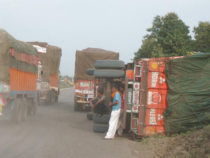 | 10.10. Ahmednagar, 2320 km dall'inizio Gli uccelli cantano, le rane e i grilli rumoreggiano. Uno sforzo bestiale in una salita ripidissima di 4 km alla fine di una giornata ormai troppo lunga. Il primo pedale indiano regge solo 250 km. Nel cerchione posteriore due microfratture e una terza un po piu' grande. Avanti col cerchione in condizioni precarie senza freni posteriori facendo attenzione ad ogni buca sulla strada. A Pune mancano ancora oltre 100 km. |
